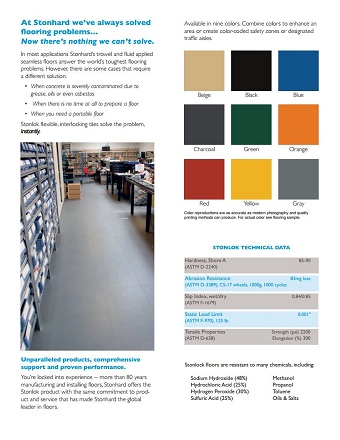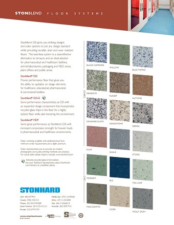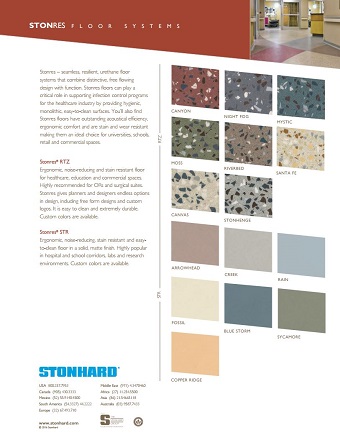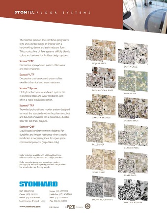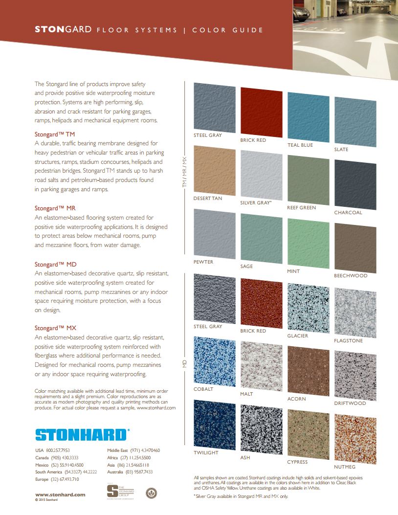 Stonhard ofrece una extensa gama de colores para elegir, pero no se detiene allí. Pregunte acerca de la gama de colores personalizados, mexclas y logotipos.